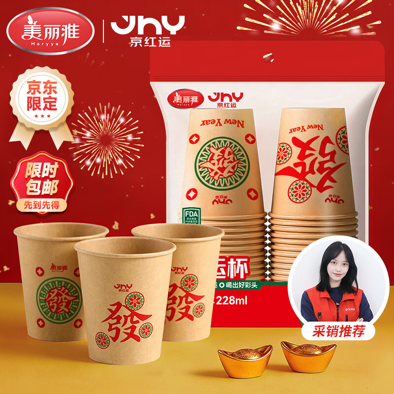 【自营】美丽雅 一次性纸杯 228ml*50只