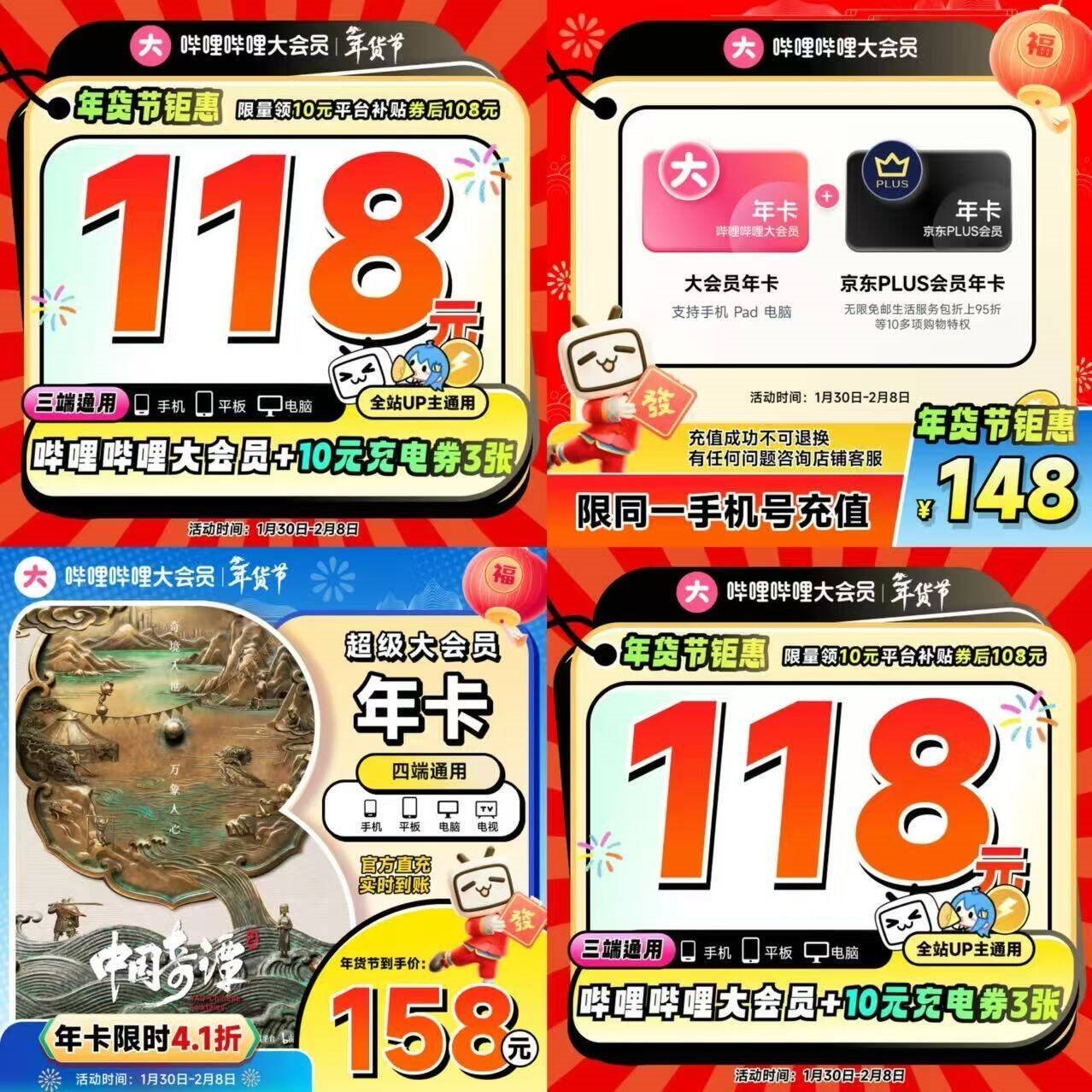 108亓 B站会员12个月年卡