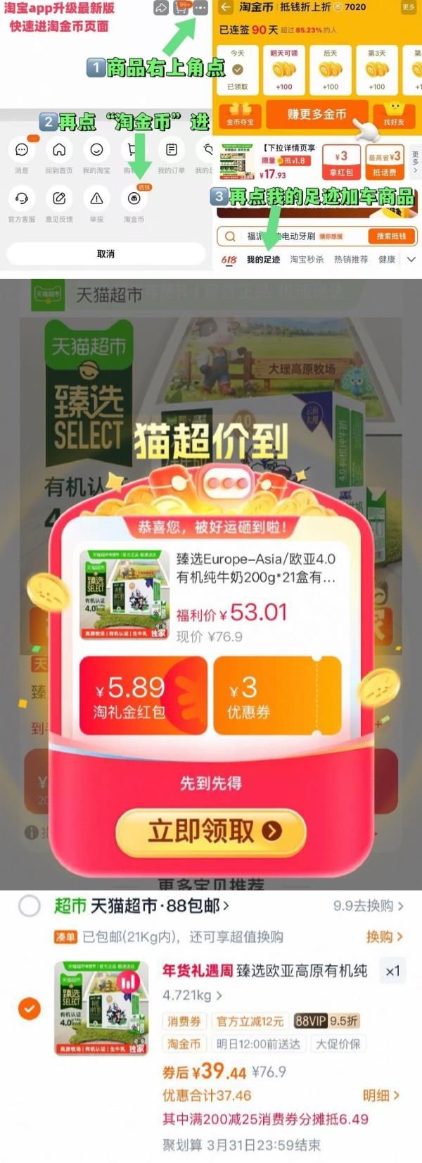 超市首页搜索“臻选美食品类金”,部分有3品类金