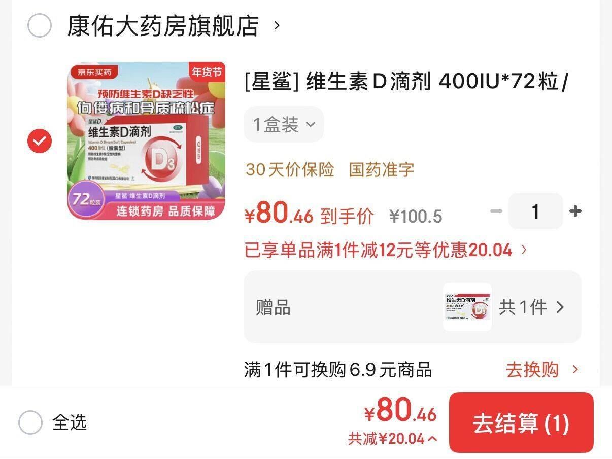 80.46元144粒 星鲨好价 星鲨 维生素D3滴剂72粒 买一赠一,共到手2盒好单发报员2026年02月07日 19:470举报 80.46元144粒 星鲨好价星鲨 维生素D3滴剂72粒 https://u.jd.com/lOt5gjT 买一赠一,共到手2盒OTC版本放心买,孩子每天都要吃!复制文案