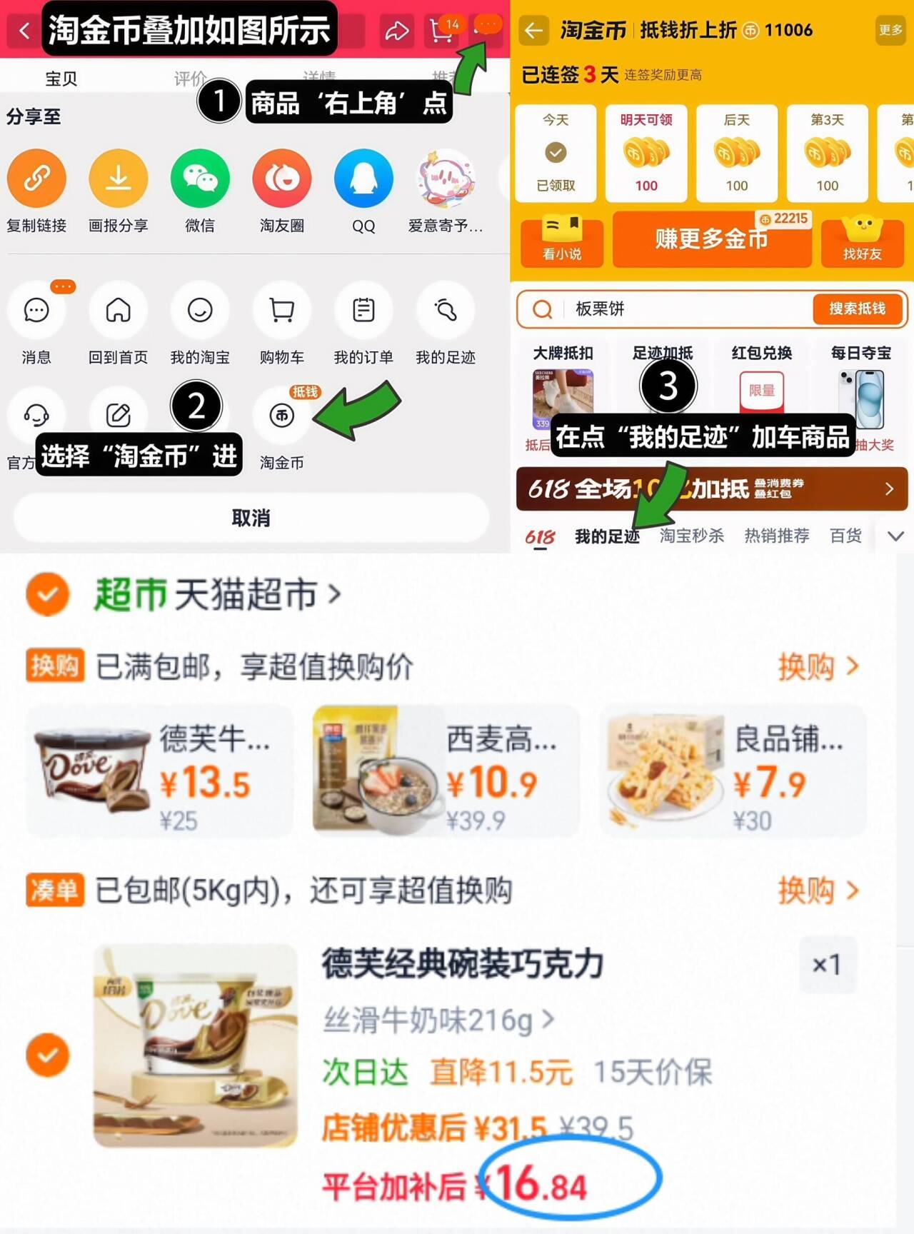 1、如图点右上角3个点,选淘金币