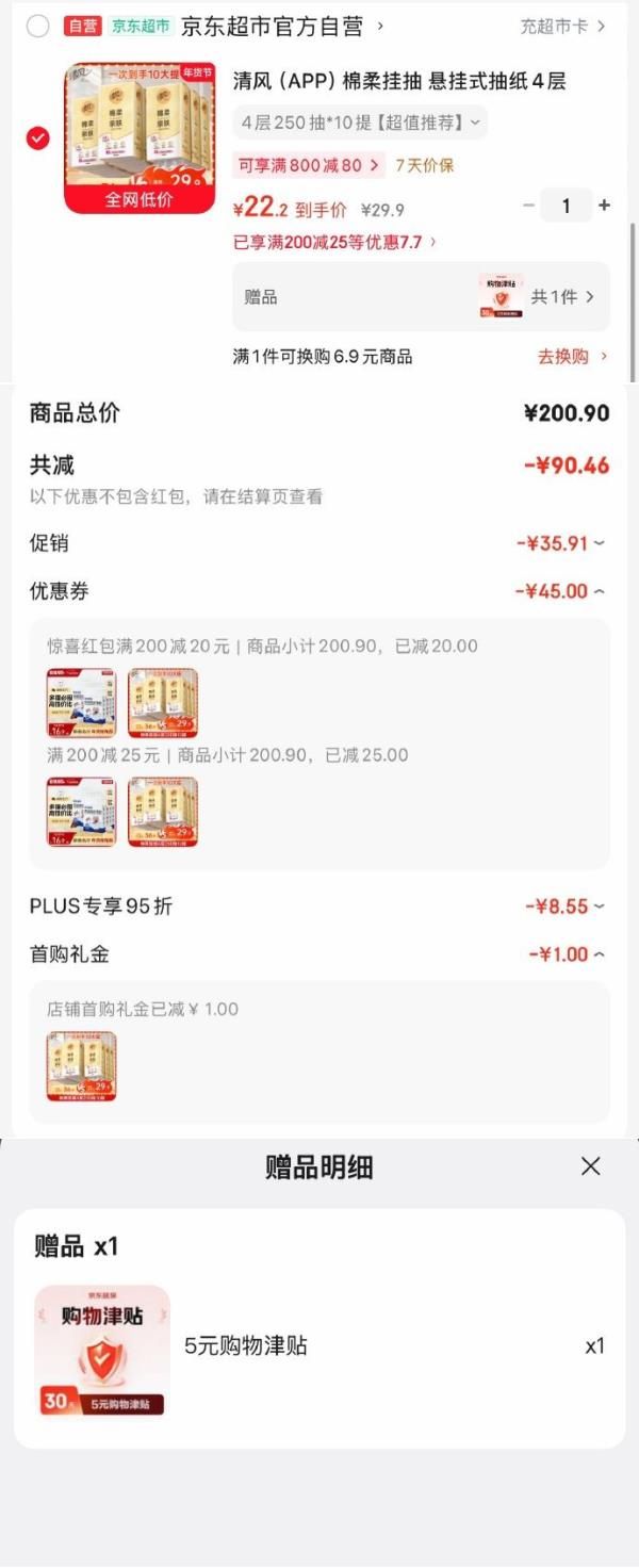 1首单,凑后【22.2】赠5元购物津贴