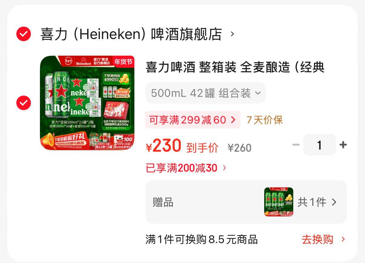 好忦喜力啤酒 组合装整箱