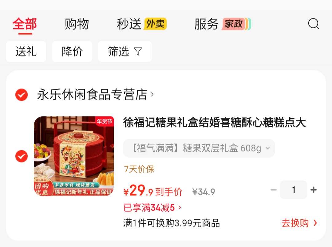 徐福记 糖果礼盒 福气满满 糖果双层礼盒 608g【29.9】