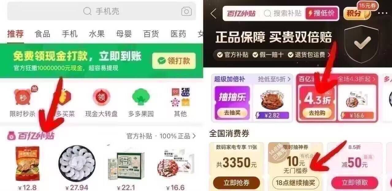 pdd 百亿补贴 消费.券进入