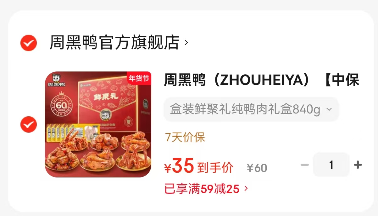 周黑鸭 中保盒装 鲜聚礼礼盒 保质期60天 纯肉盒装840g,拍下【35】