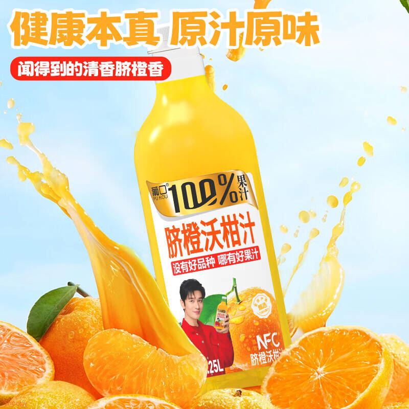 19.9元 NFC果汁脐橙沃柑汁1.25L*2瓶
