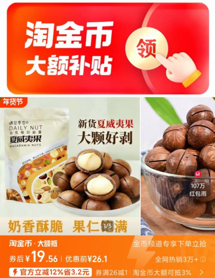 年货坚果这些,可以多备点~ 夏威夷果如果线下买,40多/斤 -好单发报员2026年02月08日 15:450举报 年货坚果这些,可以多备点~夏威夷果如果线下买,40多/斤-奶香大颗夏威夷果500g19元下滑详情,到淘金币页面拍https://m.tb.cn/h.7vNetHW复制文案