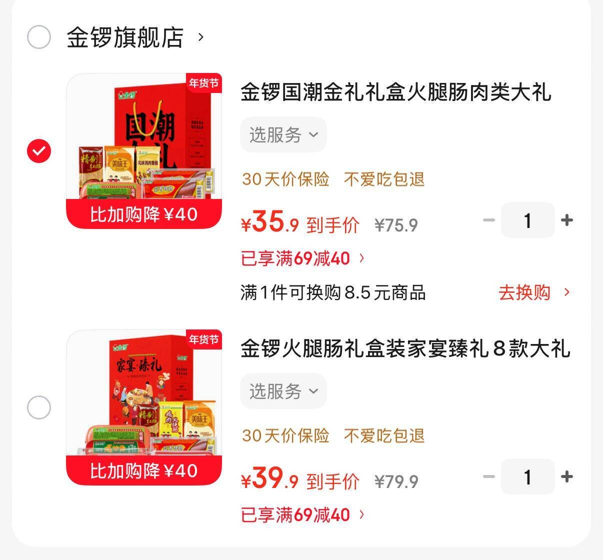 金锣 家宴臻礼1614g 礼盒装39元.9
