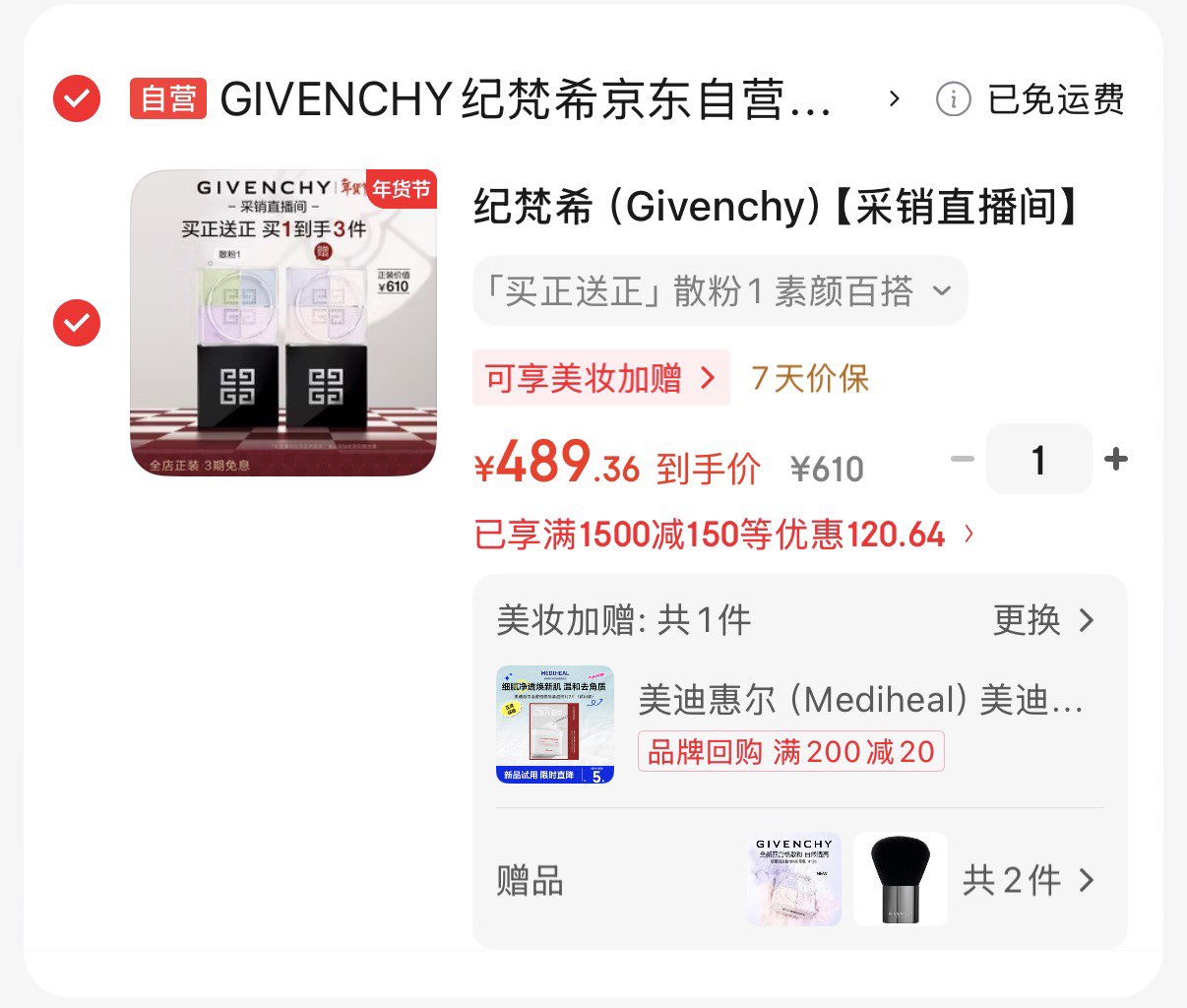 含赠到手2个正装 再赠散粉刷