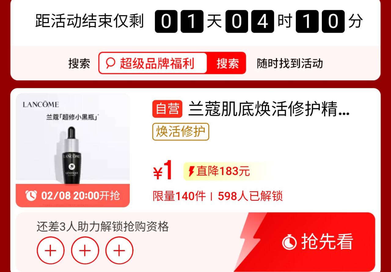 20点1亓,兰蔻精华 需要助力解锁