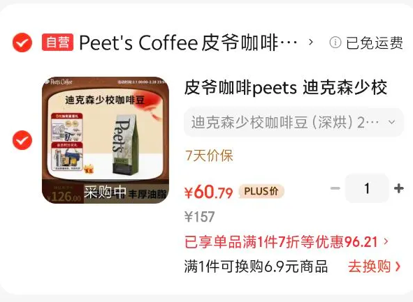 售价157元,下单领取200-25(PLUS会员券),200-20(惊喜红包)优惠券,参与满1件打7折,PLUS专享立减7.85元优惠活动,下单1件,实付低至60.79元。首购6元