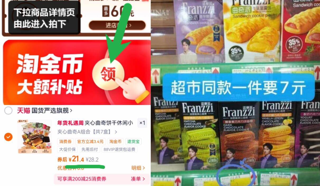3亓/盒速叠1.5淘金币 下拉详情页跳转淘金币拍21.4亓 法丽兹 夹心曲奇饼干合集7盒 好单发报员 2026年02月08日 22:16 0 举报 3亓/盒速叠1.5淘金币下拉详情页跳转淘金币拍21.4亓【法丽兹】夹心曲奇饼干合集7盒https://m.tb.cn/h.7FScmlA超市1盒7亓!咱们3亓 复制文案