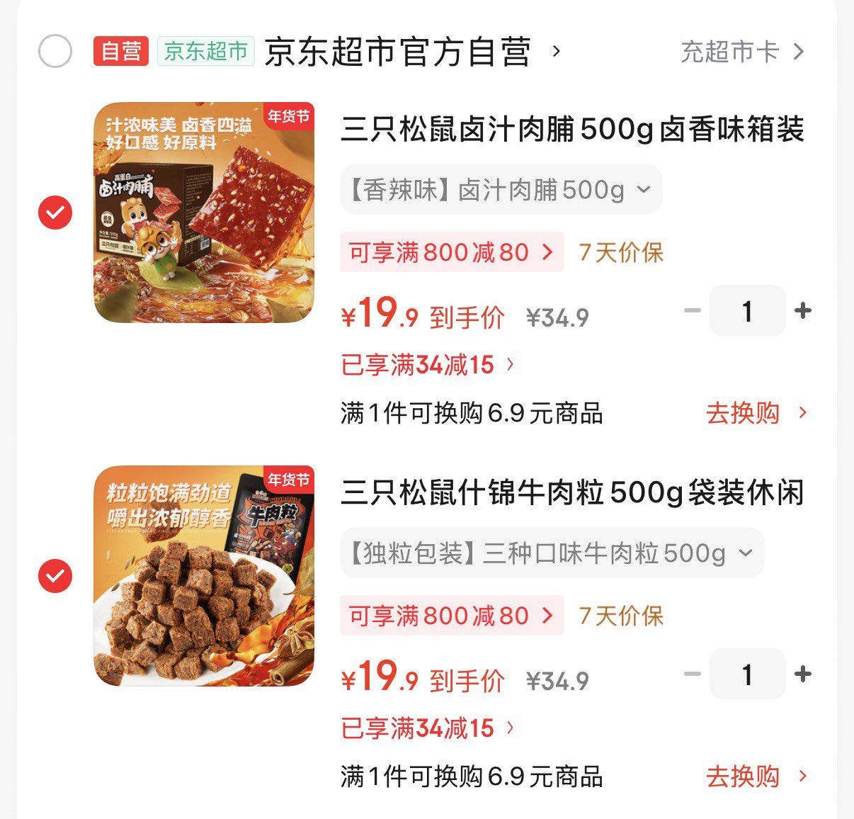 三只松鼠 什锦牛肉粒500g