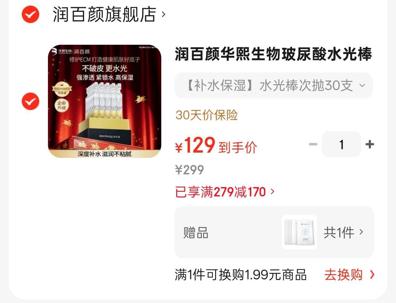 润百颜玻尿酸次抛精华30支