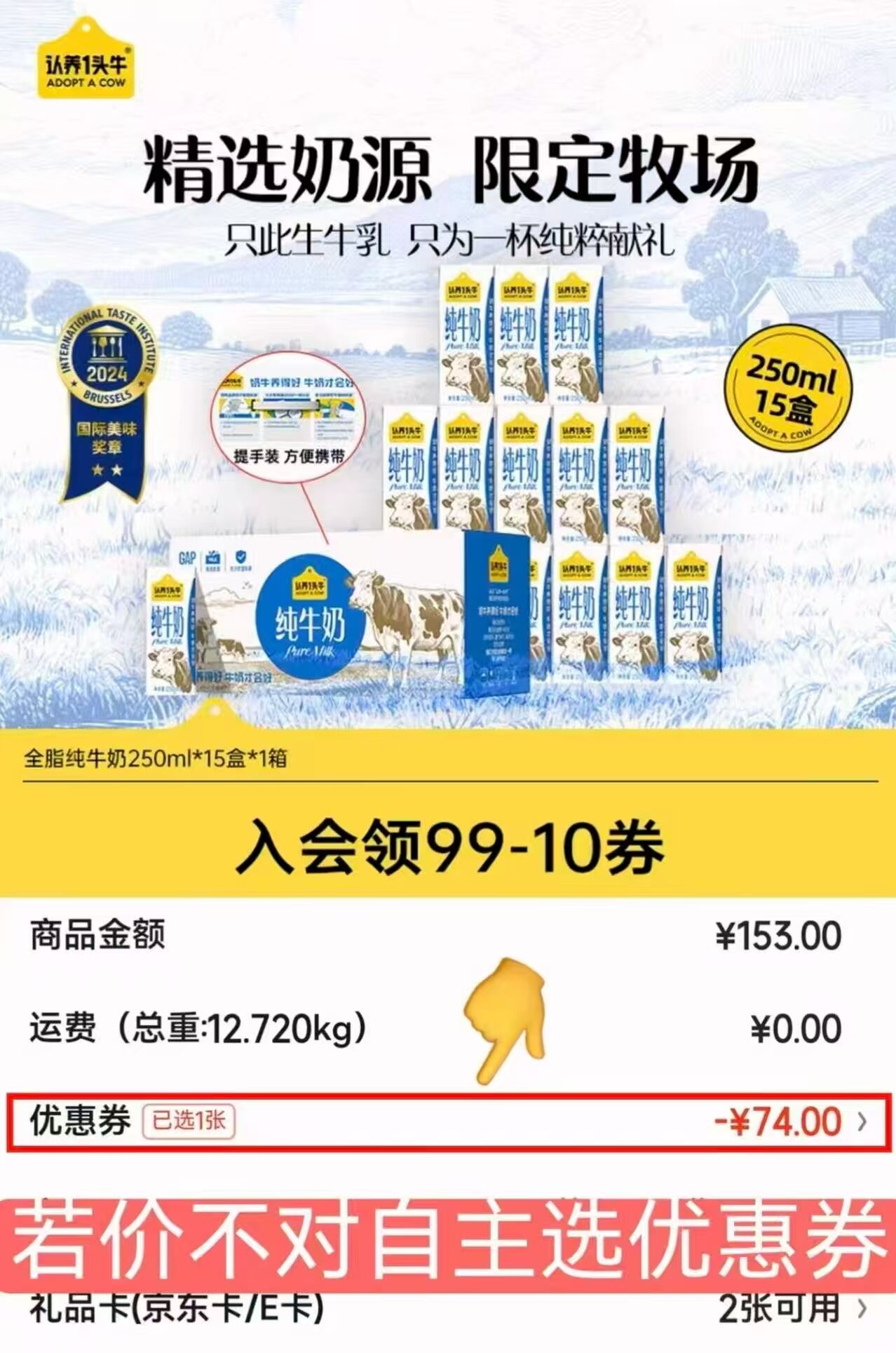 快一头牛shen忦 自营 认养一头牛加量装 全脂纯牛奶250ml*15盒整箱好单发报员2026年02月09日 00:010举报 ——快一头牛shen忦——【自营】认养一头牛加量装全脂纯牛奶250ml*15盒整箱https://u.jd.com/lGKAzUW买3件76亓 云费,Plus包邮*才1.6/盒 最后一波 年货必备*若下単忦不对自主选择优.惠卷复制文案