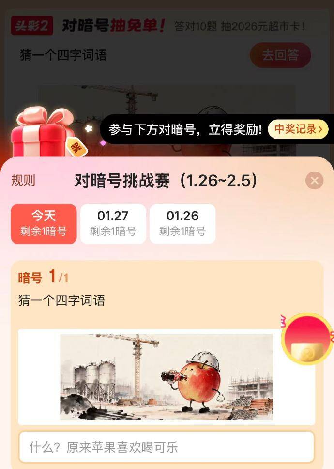 京东超市对暗号 抽超市卡