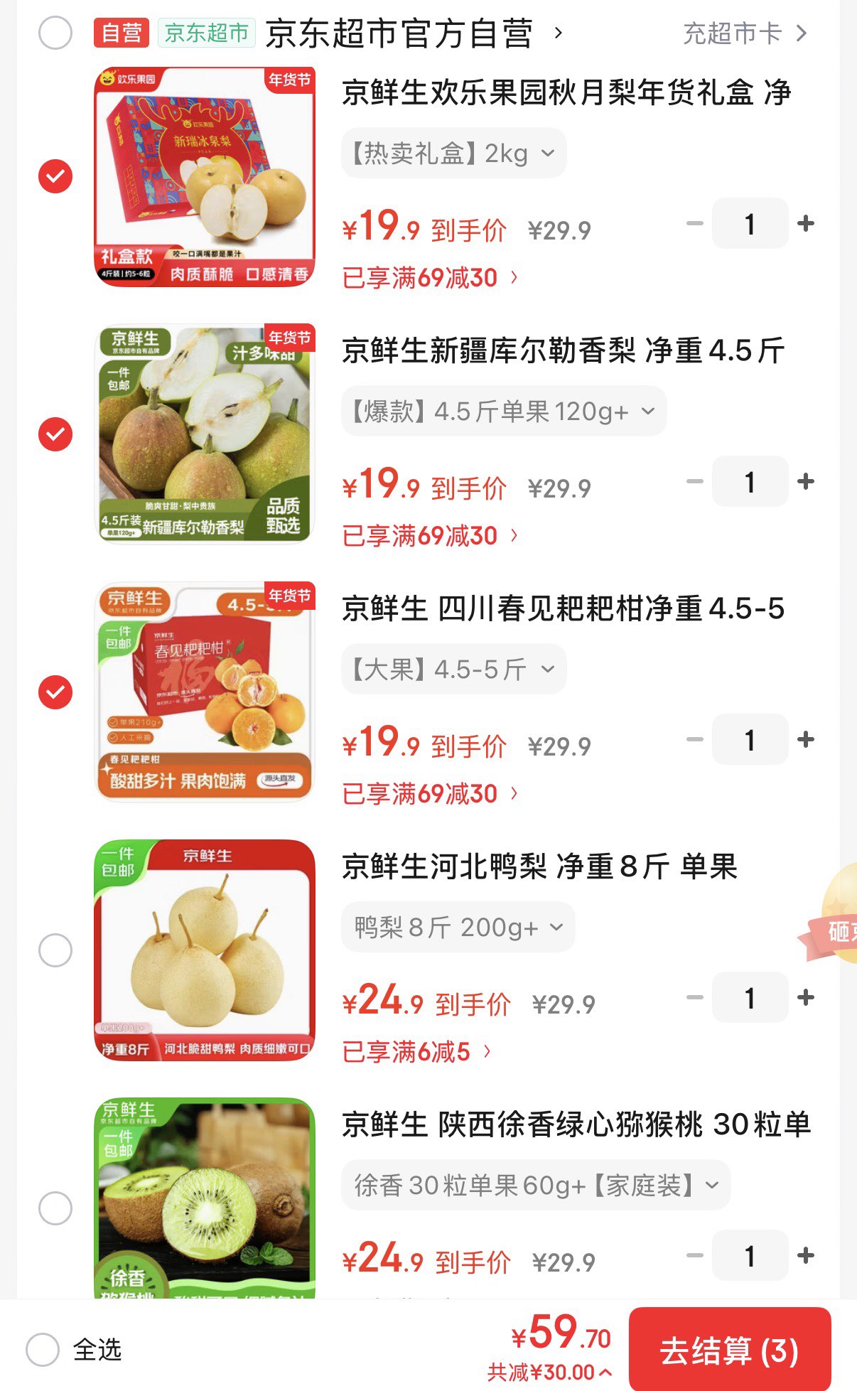 自营水果任选3件折19.9/件