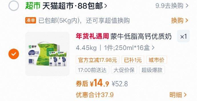 牛奶有补贴地区还可以买,如还有蒙牛品牌金到手更低 部分地区有补贴 蒙牛低脂高钙营养牛奶250mlx16盒 好单发报员 2026年02月09日 09:21 0 举报 牛奶有补贴地区还可以买,如还有蒙牛品牌金到手更低部分地区有补贴蒙牛低脂高钙营养牛奶250mlx16盒淘金币页面“搜索”商品标题加购包邮 拍1件【14.9】 https://m.tb.cn/h.7FXkhQ9 复制文案