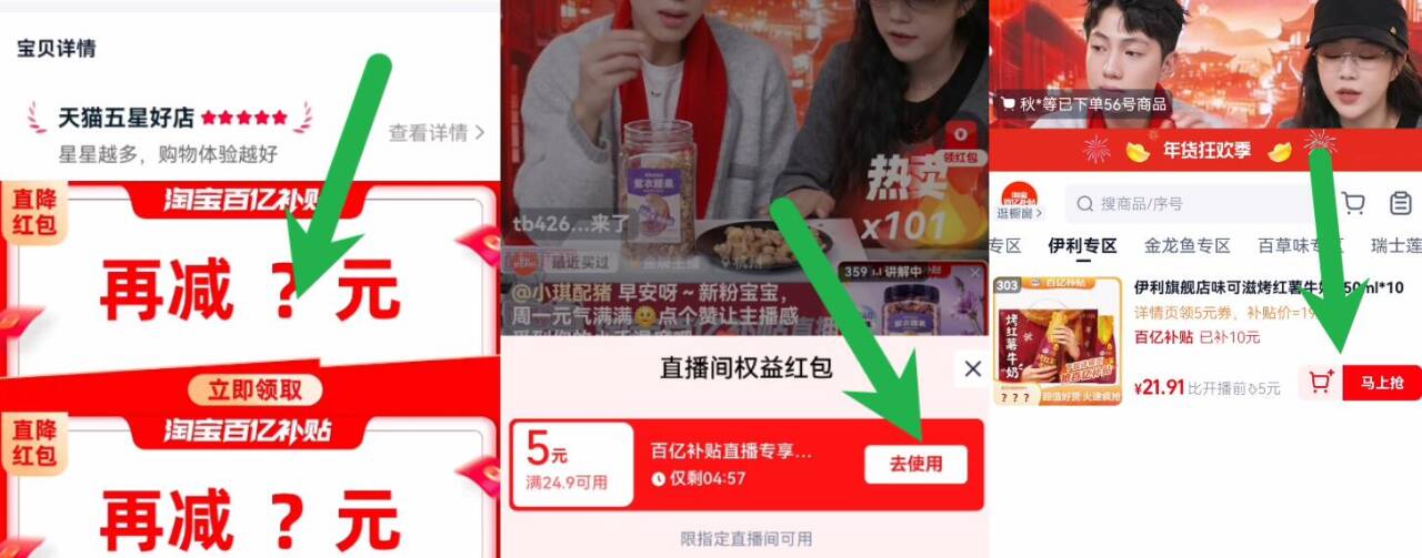 3、跳转直播间找到商品拍下