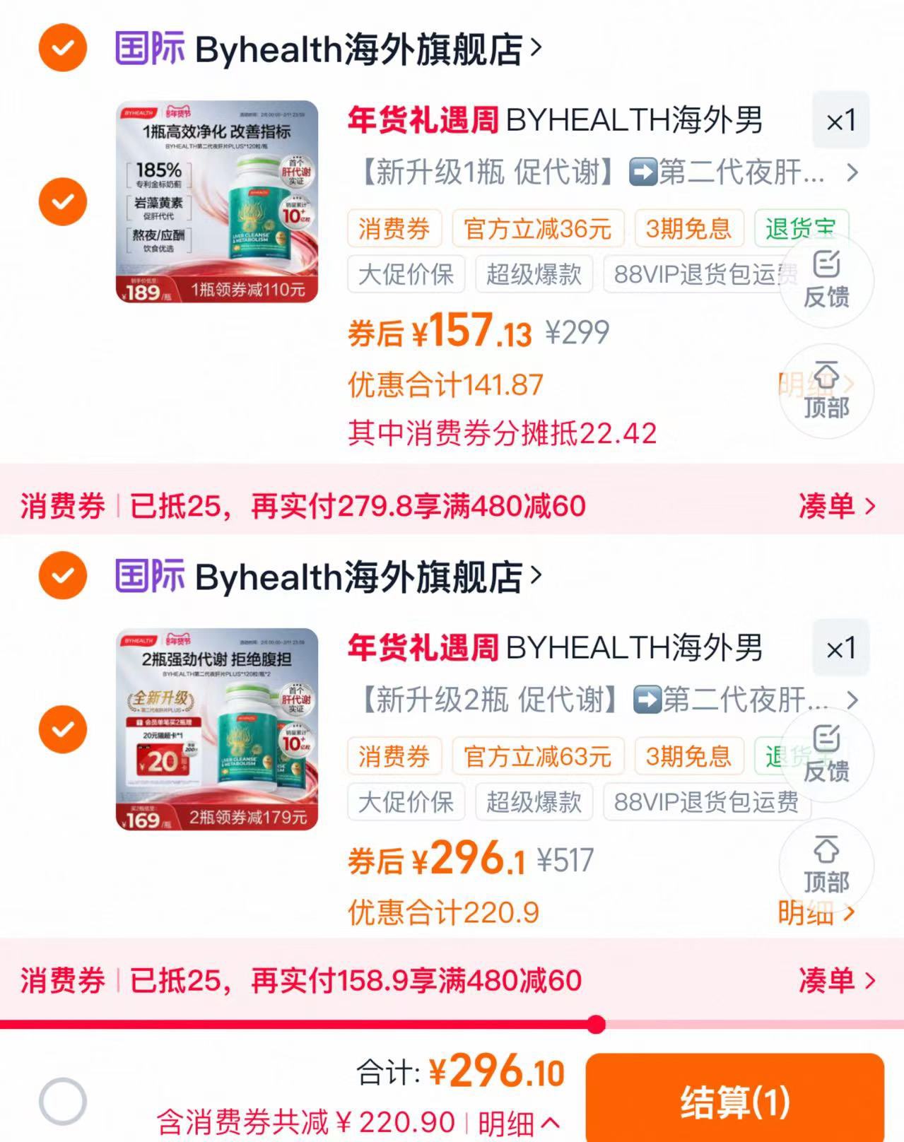 88vip领25肖菲券 拍1瓶选项 凑券到手157亓 拍2瓶选项 296亓 折148/瓶 好单发报员 2026年02月09日 10:21 0 举报 88vip领25肖菲券拍1瓶选项 凑券到手157亓拍2瓶选项 296亓 折148/瓶BYHEALTH海外护肝片升级款120粒https://m.tb.cn/h.7FW2iNg 复制文案