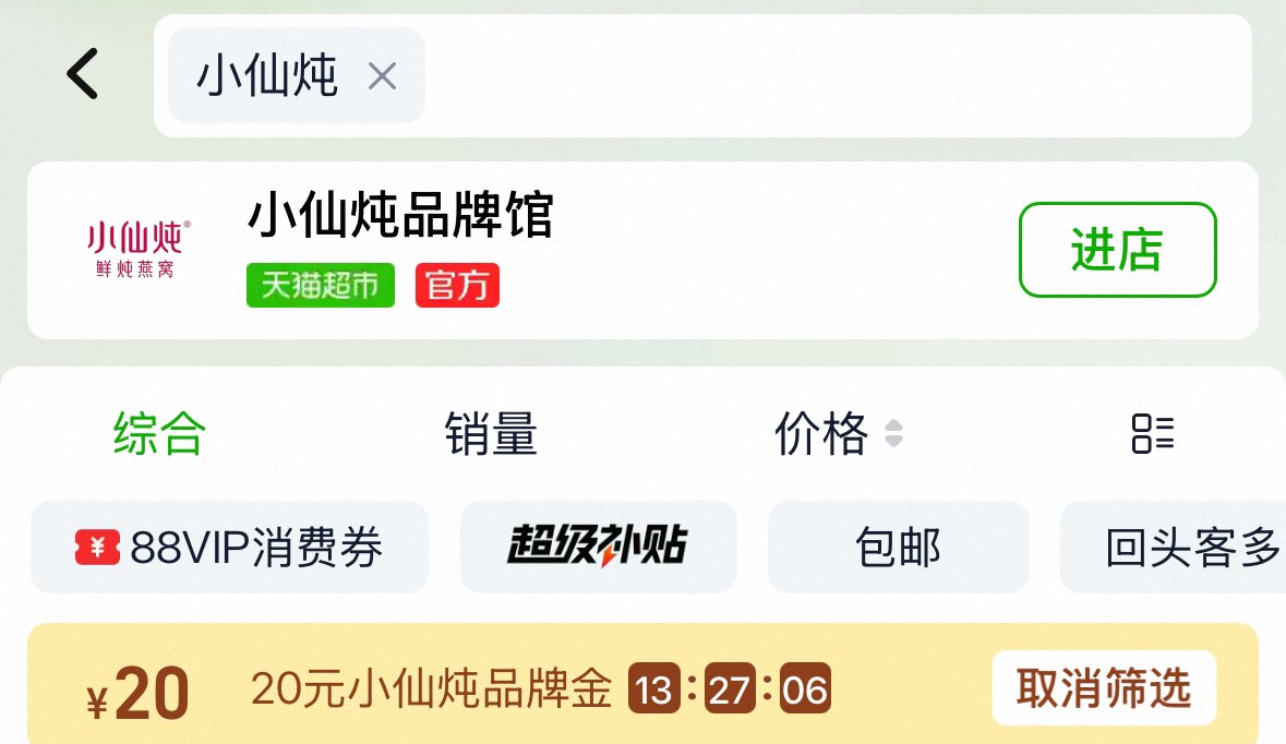 猫超搜 小仙炖 领20品牌金