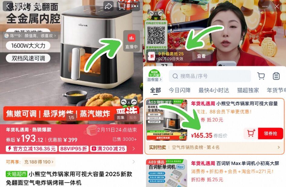 ①右上角进直播,领9折券加1件