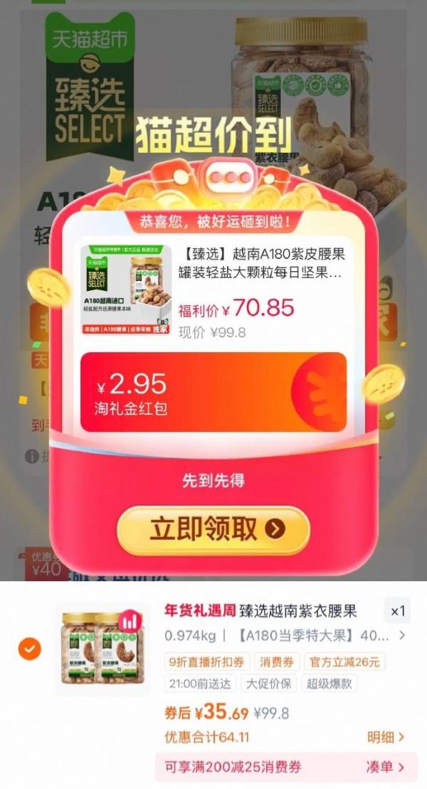 ①超市首页搜索“臻选美食品类金”,部分有3品类金