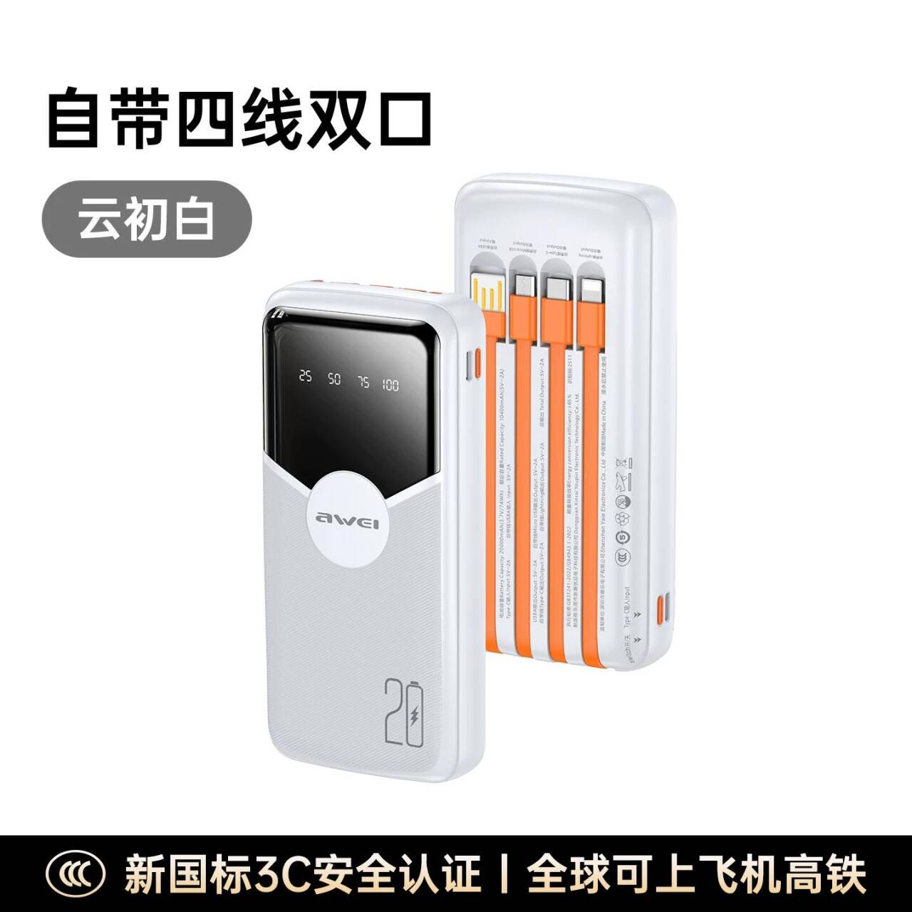 用维2W毫安充电宝自带四线