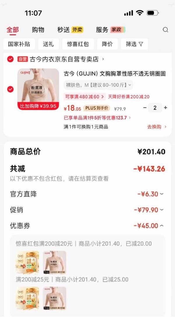古今(GUJIN)文胸无痕运动内衣
