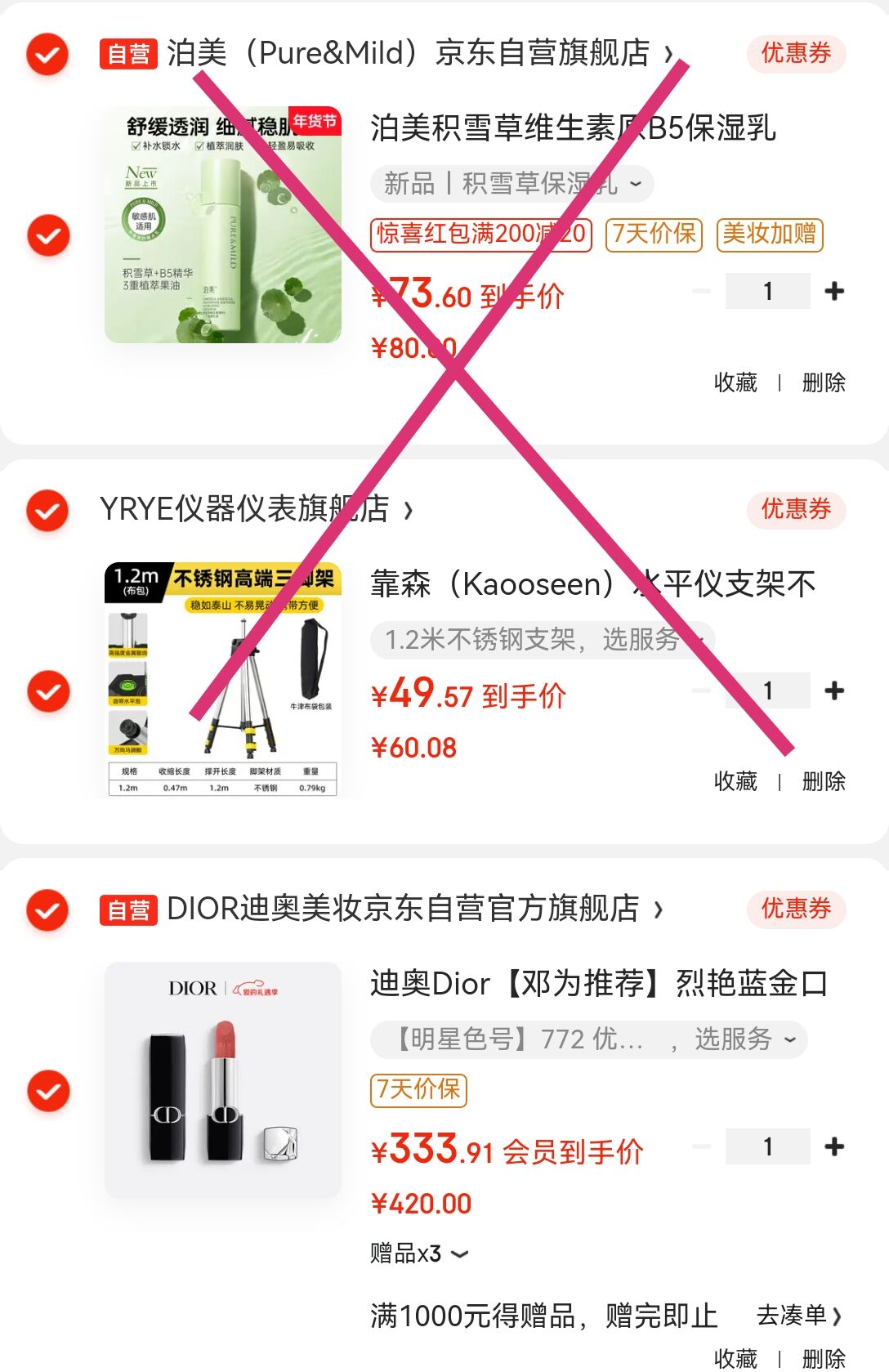 凑单各选1件付后退