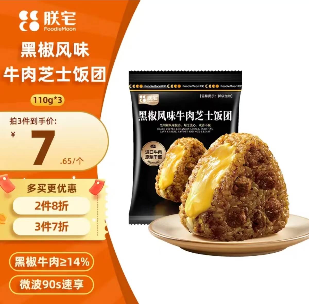 ①黑椒牛肉芝士饭团110g*3元19