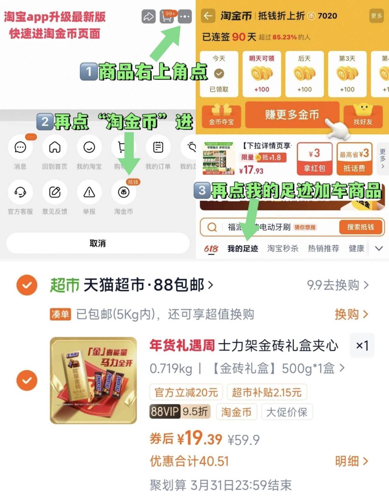 1、右上角“淘金币”加1件