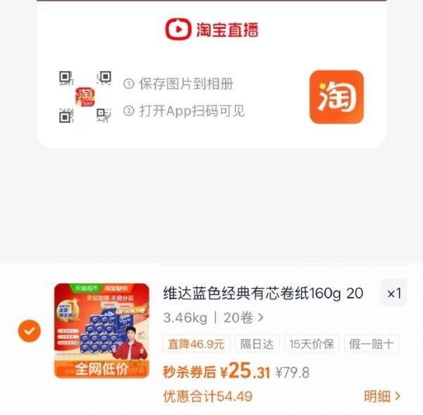 扫图一进入直播间,搜索商品再加购