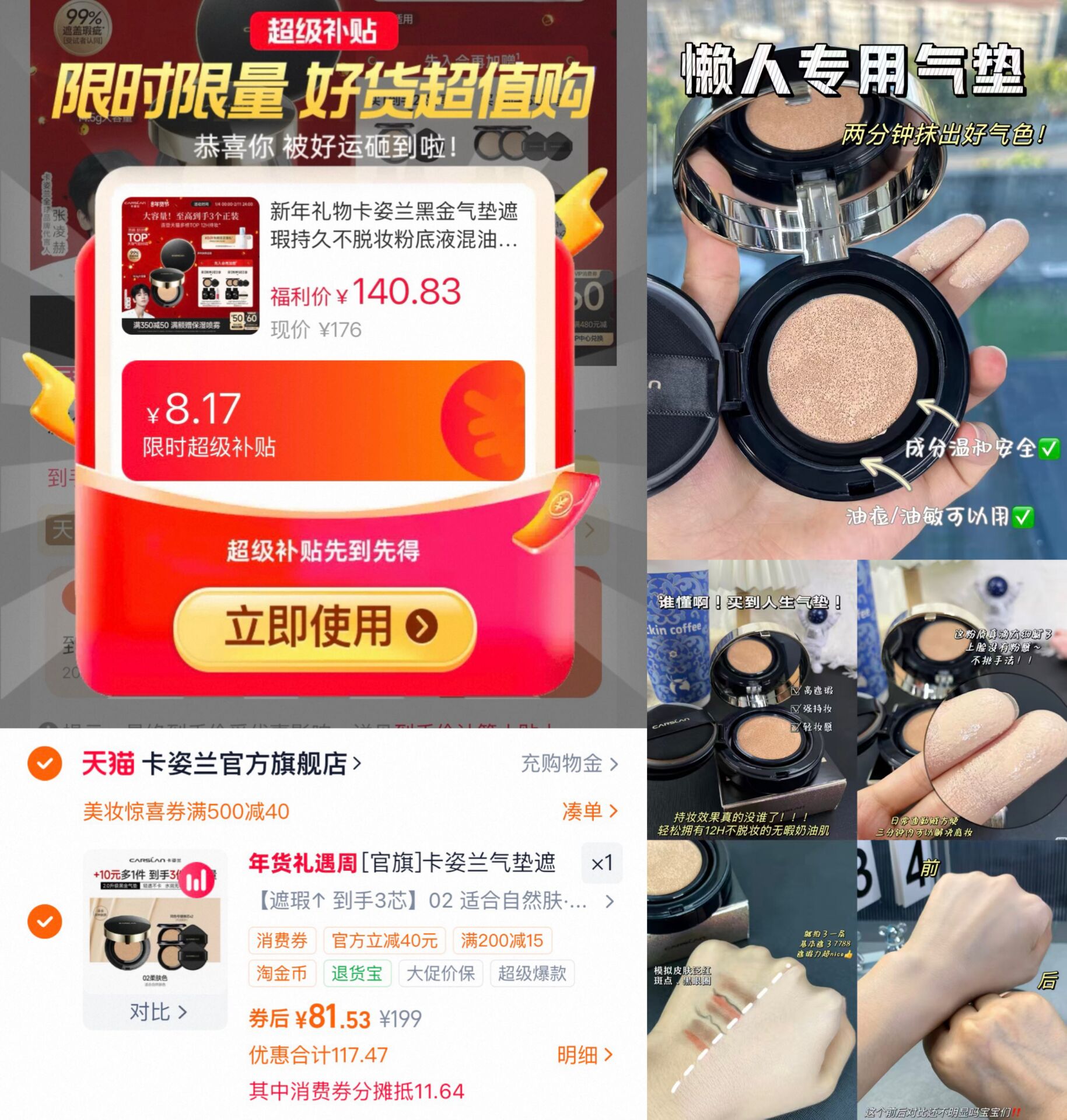 卡姿兰黑金气垫3芯81元.5