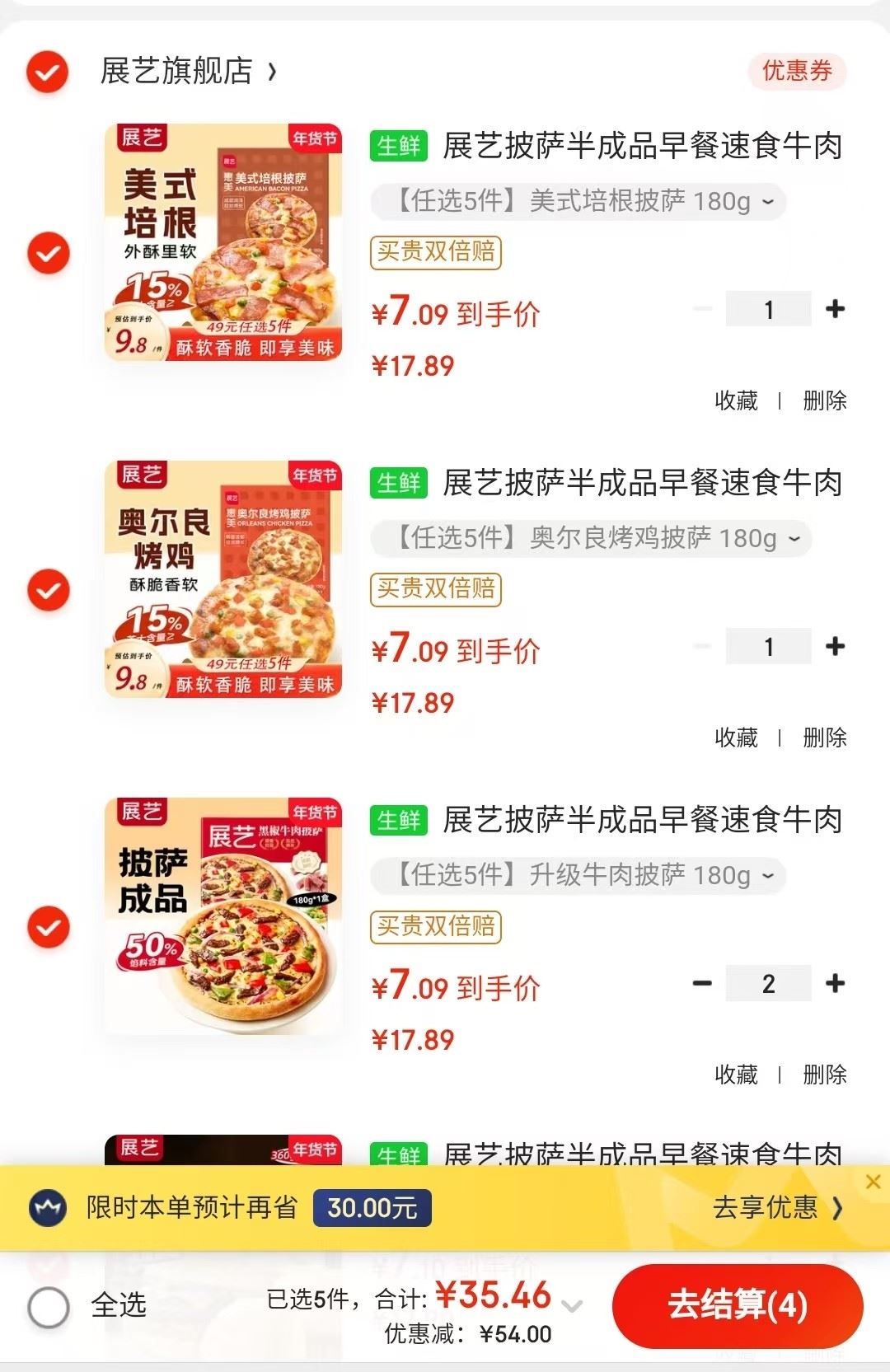 展艺 披萨半成品早餐速食牛肉匹萨饼等,任选5件【35】