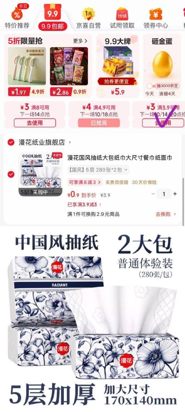 漫花国风抽纸 5层 280张*2包,【0.9】