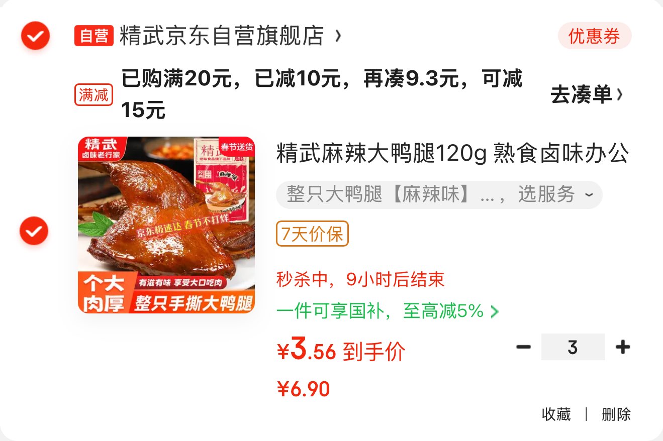 拍3件 价格如图 精武麻辣大鸭腿120g 如有立减券更低好单发报员2026年02月15日 00:400举报 拍3件 价格如图 精武麻辣大鸭腿120g 如有立减券更低https://u.jd.com/lOvxPYq 复制文案