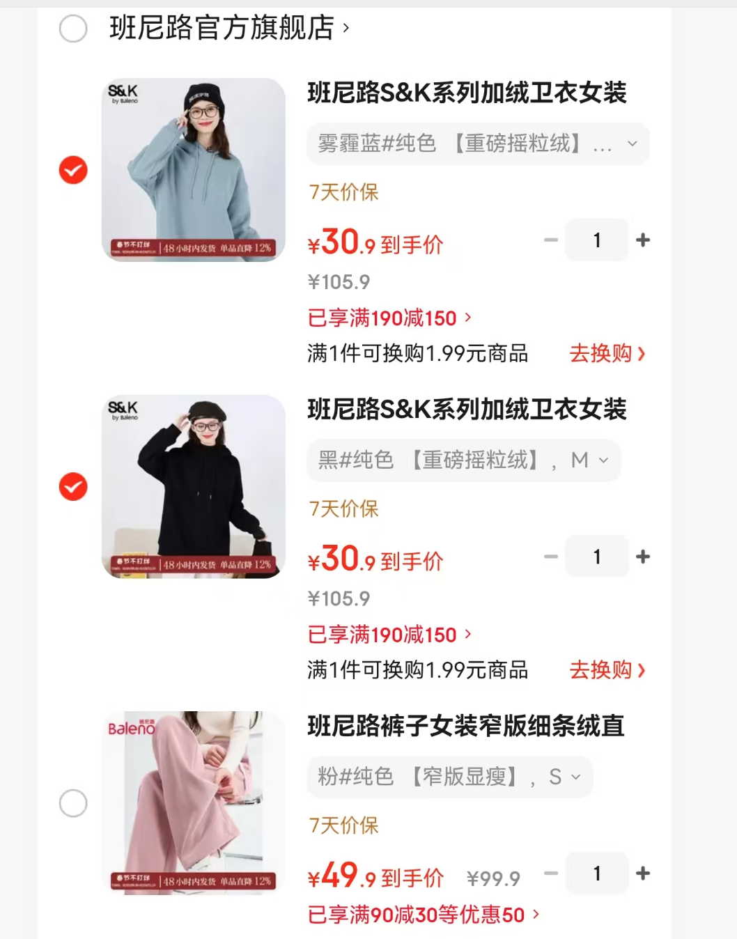 班尼路S&K系列加绒卫衣女装加厚羊羔绒,拍2件【61.8】