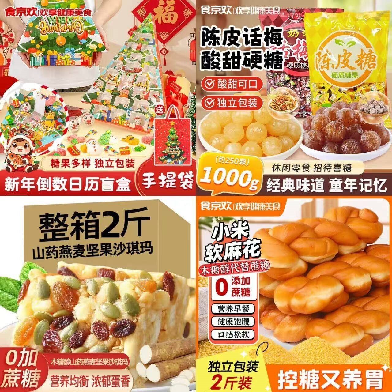 食京欢自营零食合集 10.8亓 棉花糖果 176g 17.8亓 陈皮话梅糖 2斤