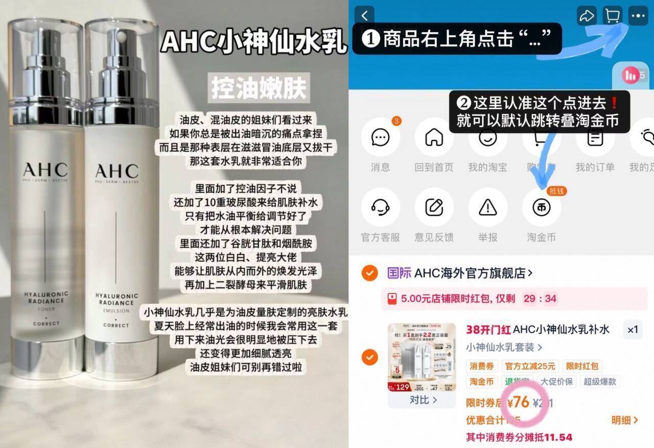 76元AHC小神仙水乳套装 叠店铺5到手2套正装量! 贈洁面50m 水乳各30ml*4好单发报员2026年02月26日 21:390举报 76元AHC小神仙水乳套装叠店铺5到手2套正装量!贈洁面50m 水乳各30ml*4https://m.tb.cn/h.iajI63Z-湊200-25消废绻1件https://m.tb.cn/h.iZapmEV复制文案