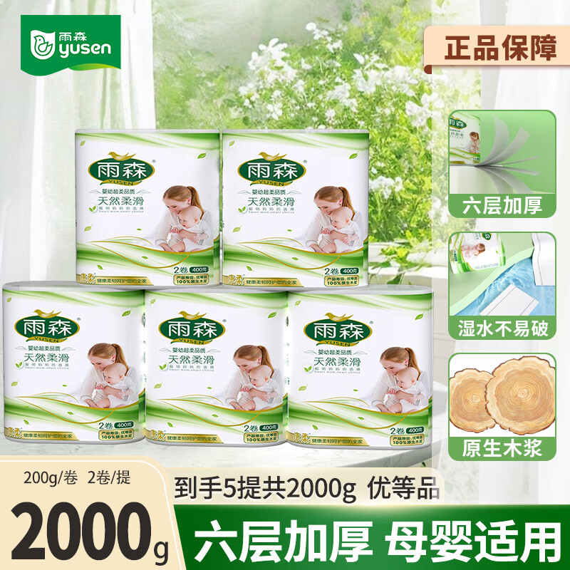 15.99元 天然柔滑卷6层200g*10卷 共5提 2000g