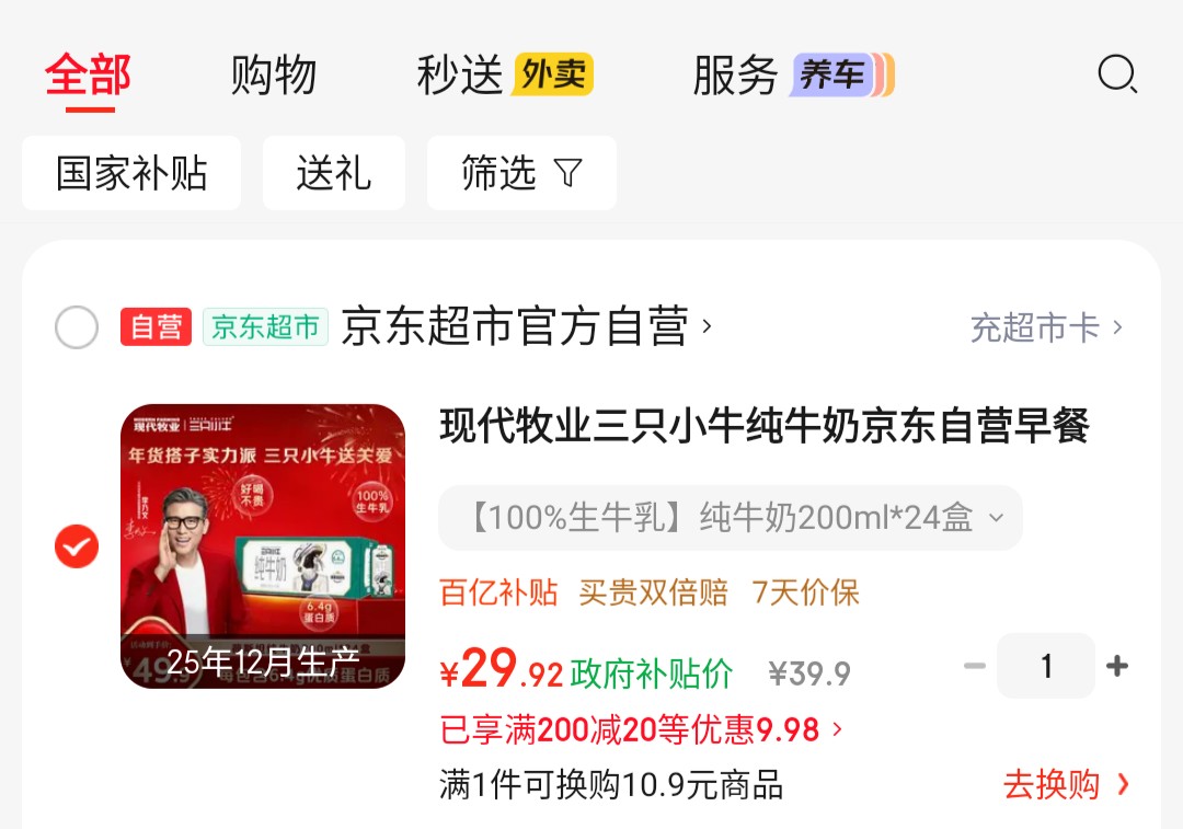 现代牧业 三只小牛纯牛奶 100%生牛乳200ml*24盒,凑后【31】