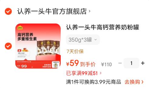认养一头牛 高钙奶粉 350g*3罐