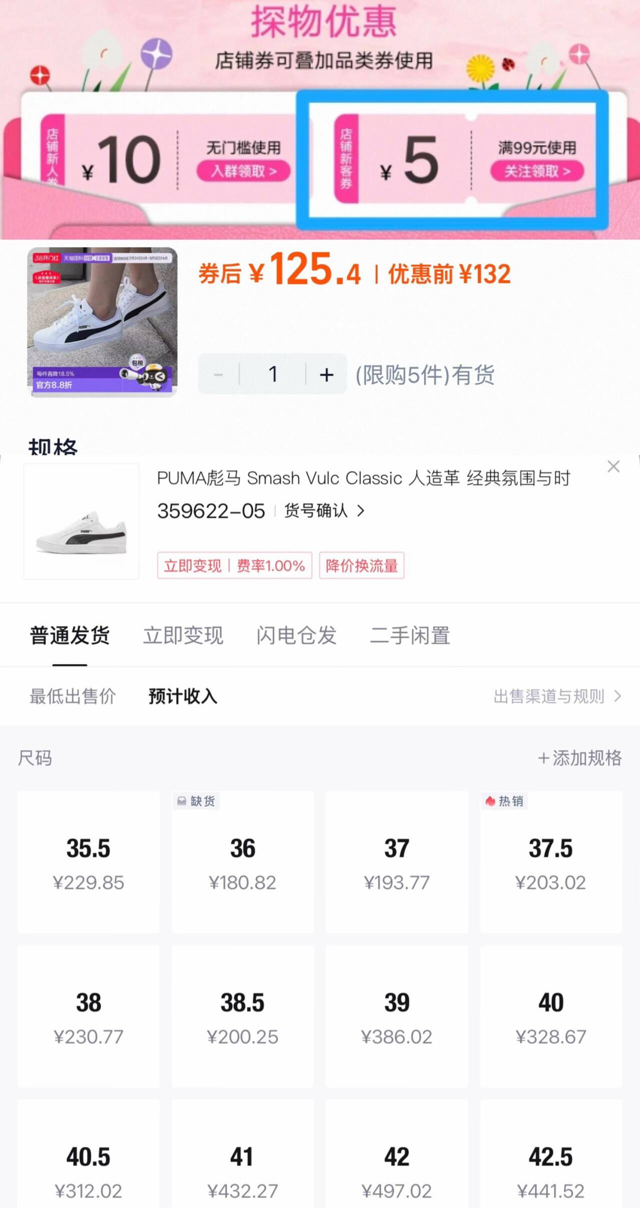 叠加肖費卷到手125