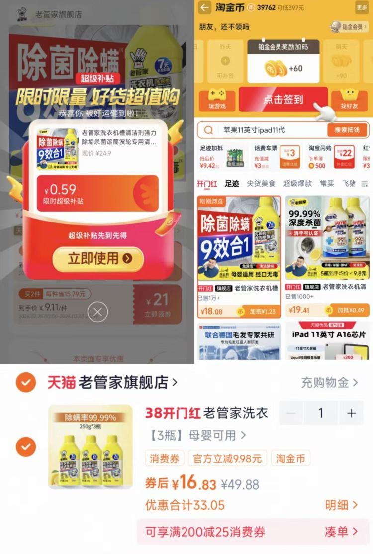 洗衣机槽清洁剤3瓶16元.8