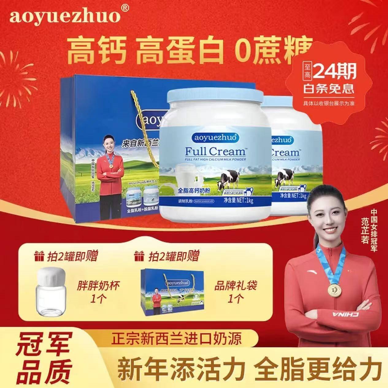 澳悦卓 全/脱脂奶粉1kg*2罐