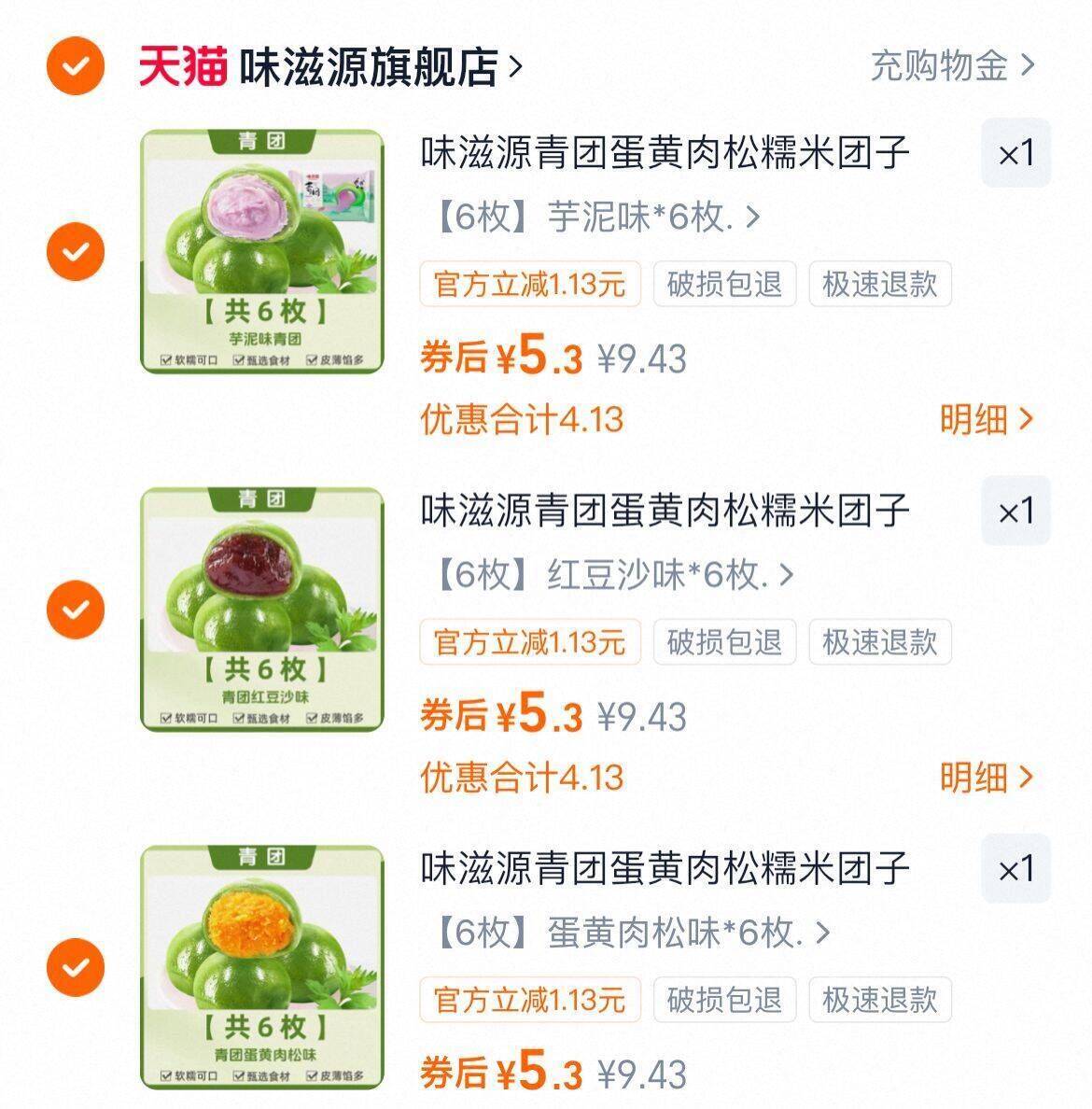 任选3件!到手15.9元 味滋源 青团6枚*3袋 皮薄馅大软糯糯的能拉丝 好单发报员 2026年02月28日 16:20 0 举报 任选3件!到手15.9元【味滋源】青团6枚*3袋皮薄馅大软糯糯的能拉丝内馅扎实 咬起来油润细腻-https://m.tb.cn/h.iZvquYi 复制文案