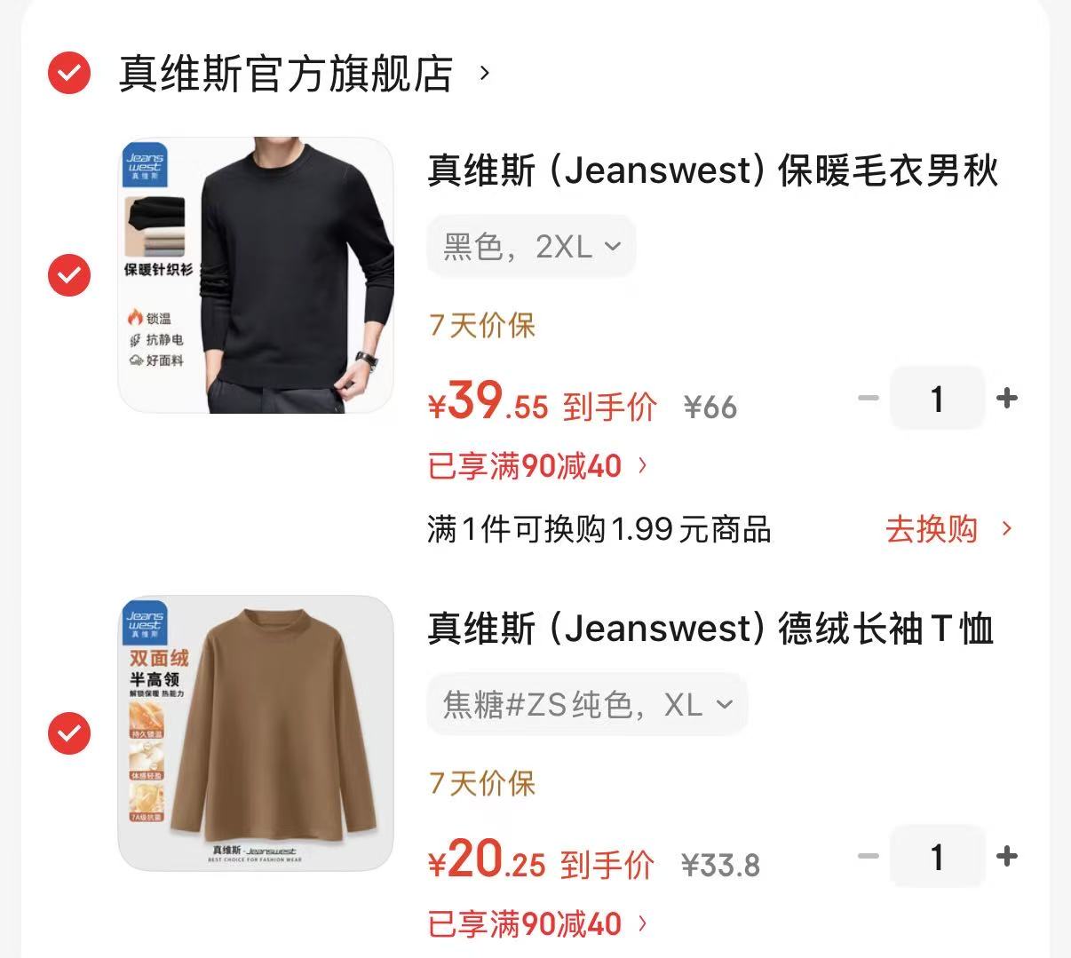 真维斯 (Jeanswest)保暖毛衣 德绒长袖T恤7A级,各拍1件【59】