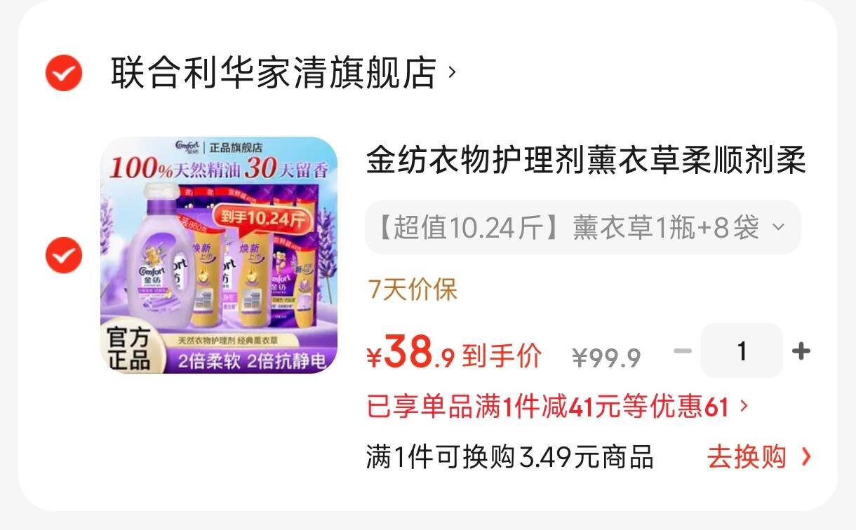 金纺衣物护理剂10.24斤 1瓶 8袋38元.9,3.7/斤好单发报员2026年03月01日 13:550举报 金纺衣物护理剂10.24斤1瓶 8袋38元.9,3.7/斤https://u.jd.com/l6hSYSX复制文案